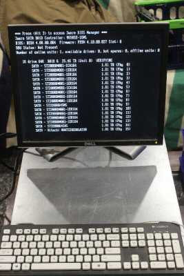 The chembro chassis 'ass-traffic-new', became known as 'the-archives', the purpose was to use the spare 16x 2 TB drives that I had on hand in a RAID6 configuration, to copy the contents of storage & resource servers over to it.